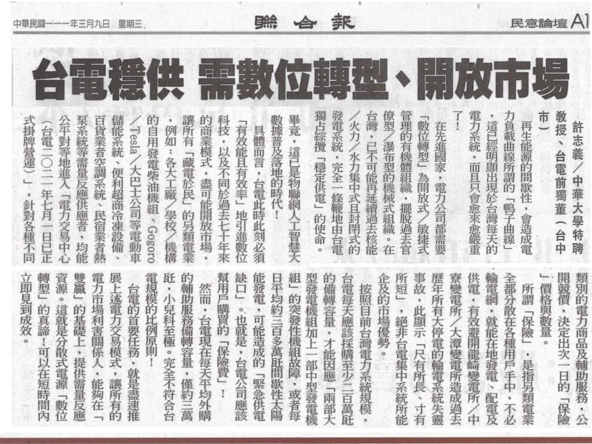2022-03-09 01:07 聯合報 / 許志義/中華大學特聘教授、台電前獨董(台中市)