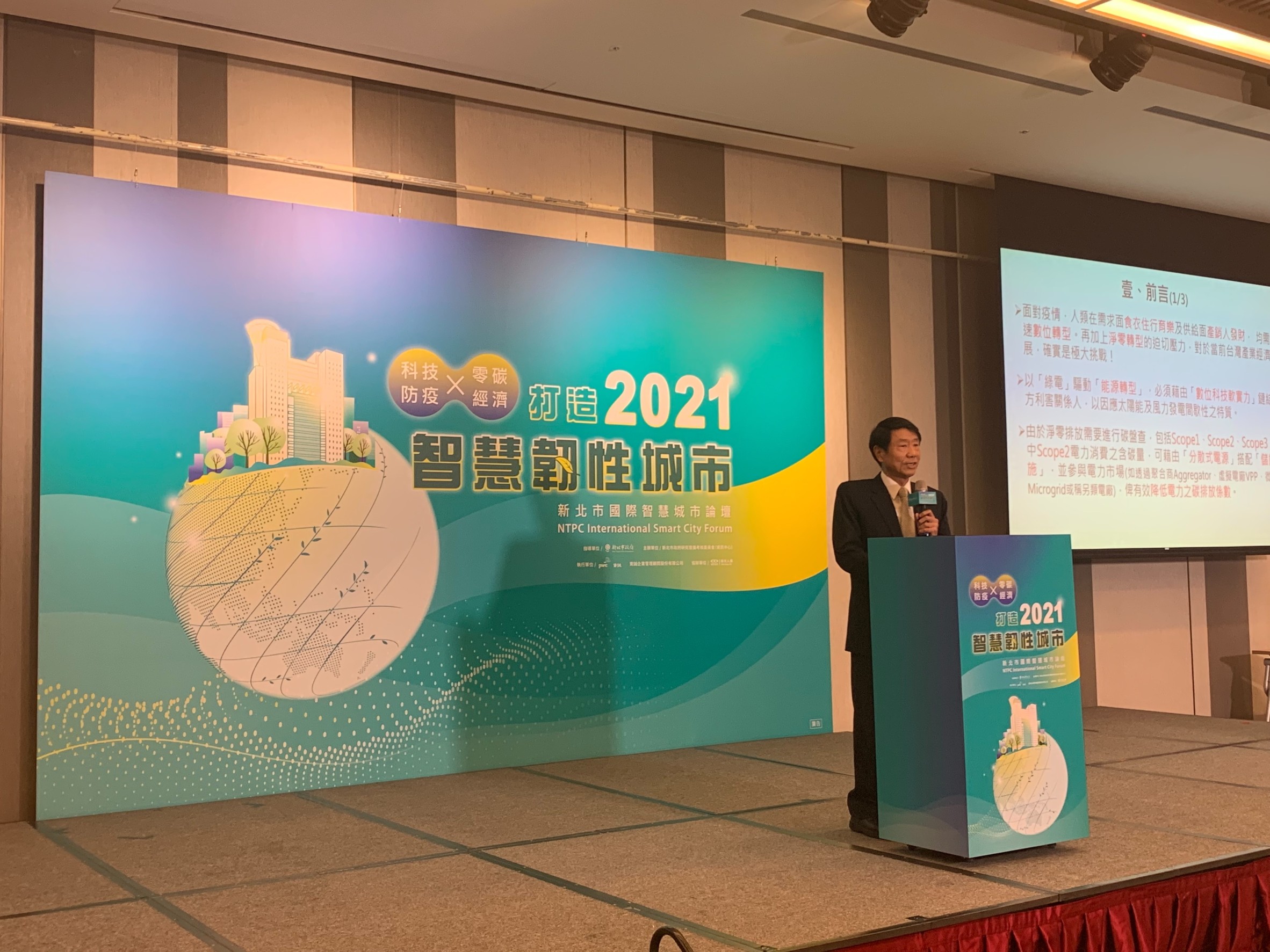 2021/11/5  應邀在「新北市國際智慧城市論壇」專題演講,主題:「面對疫情要淨零排放,以綠電驅動能源轉型」S__18333792S__18333857