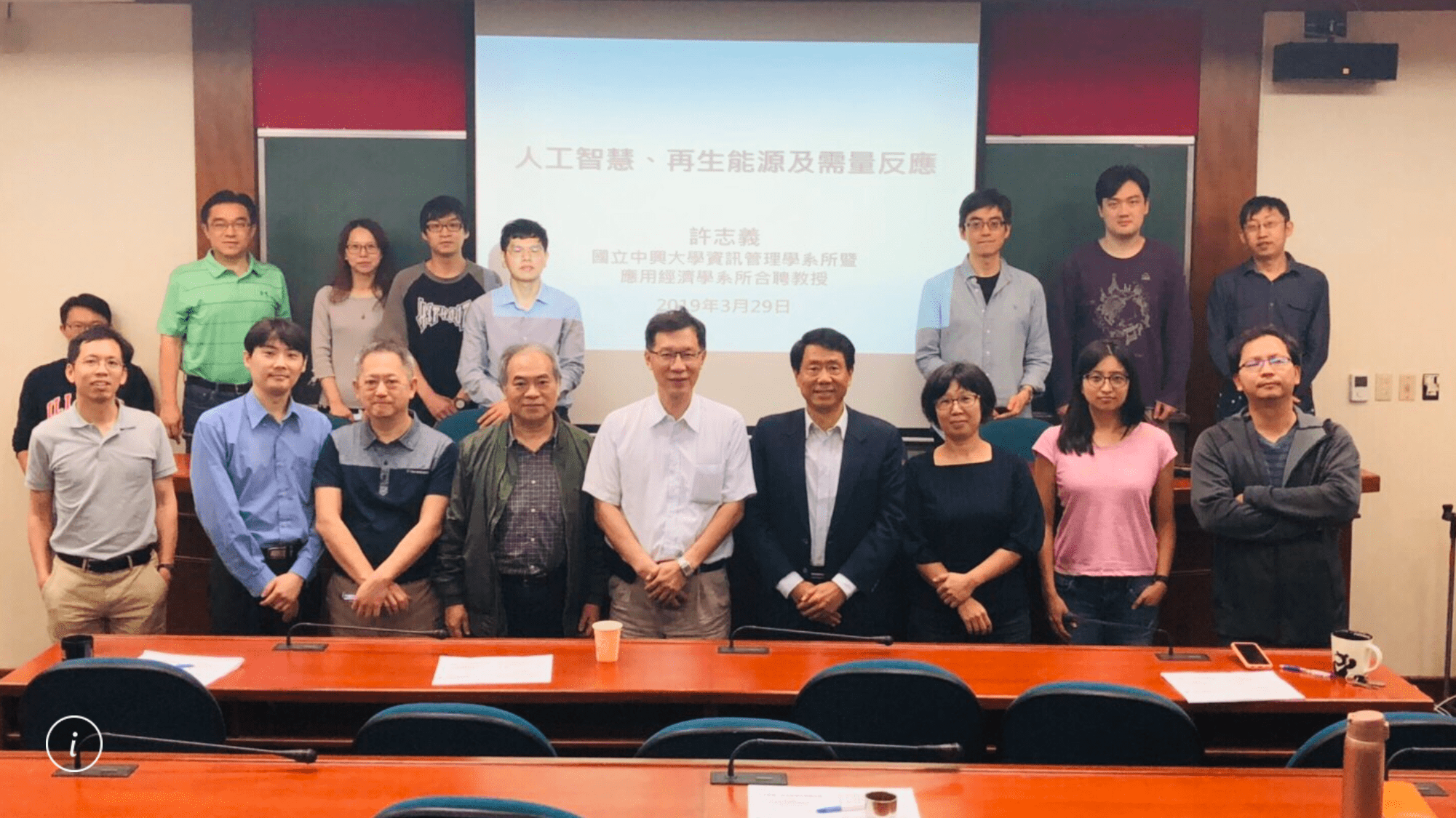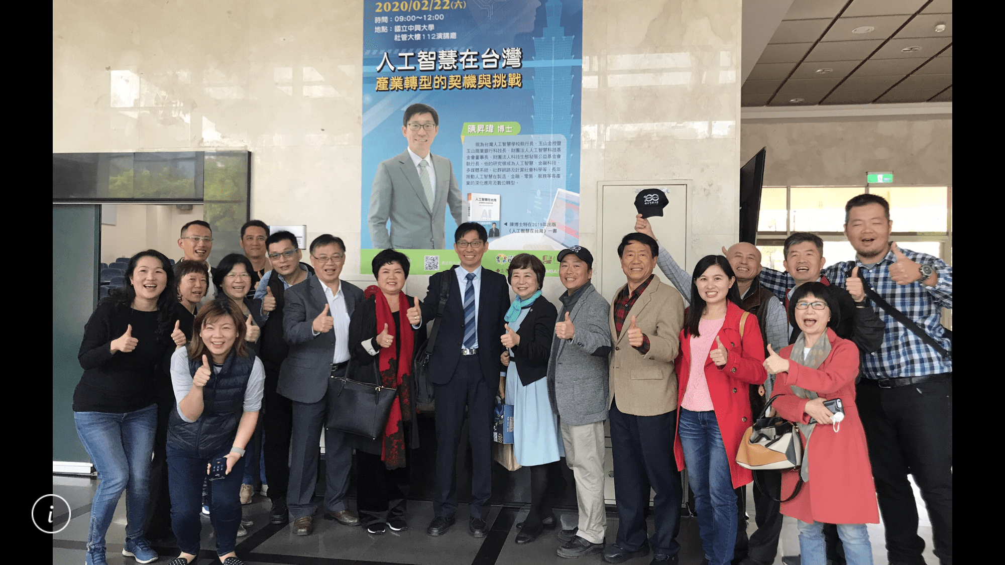 台灣人工智慧學校陳昇瑋執行長,2020年2月22日蒞臨中興大學管理學院演講「人工智慧在台灣:產業轉型的契機與挑戰」合影。