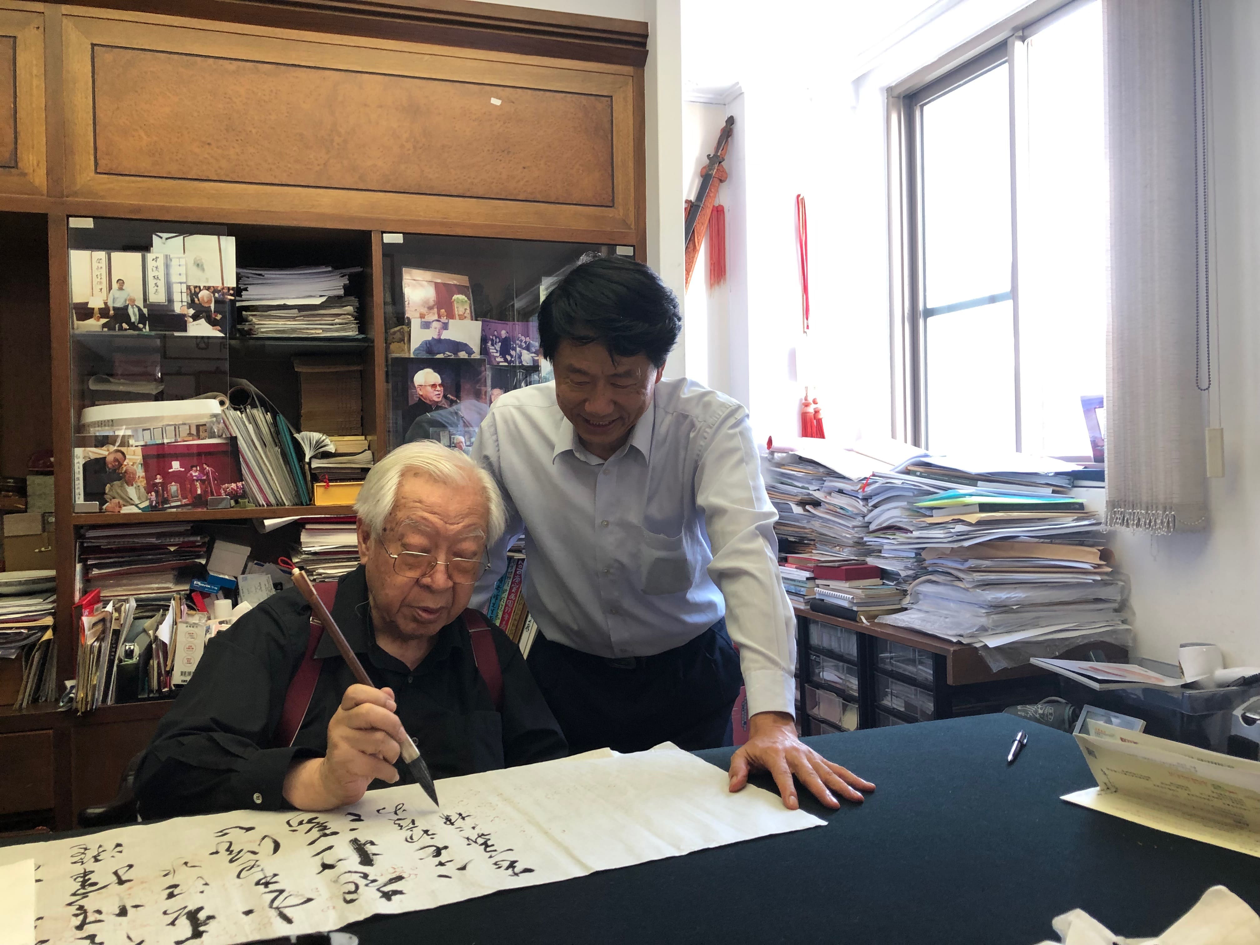 2020年11月5日「華人遠見高峰會」,歐豪年恩師以七言絕句書法祝賀孫震校長榮獲「君子經濟學家」,寓意深遠,拍照留念。S__16638050