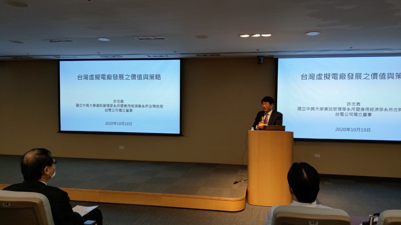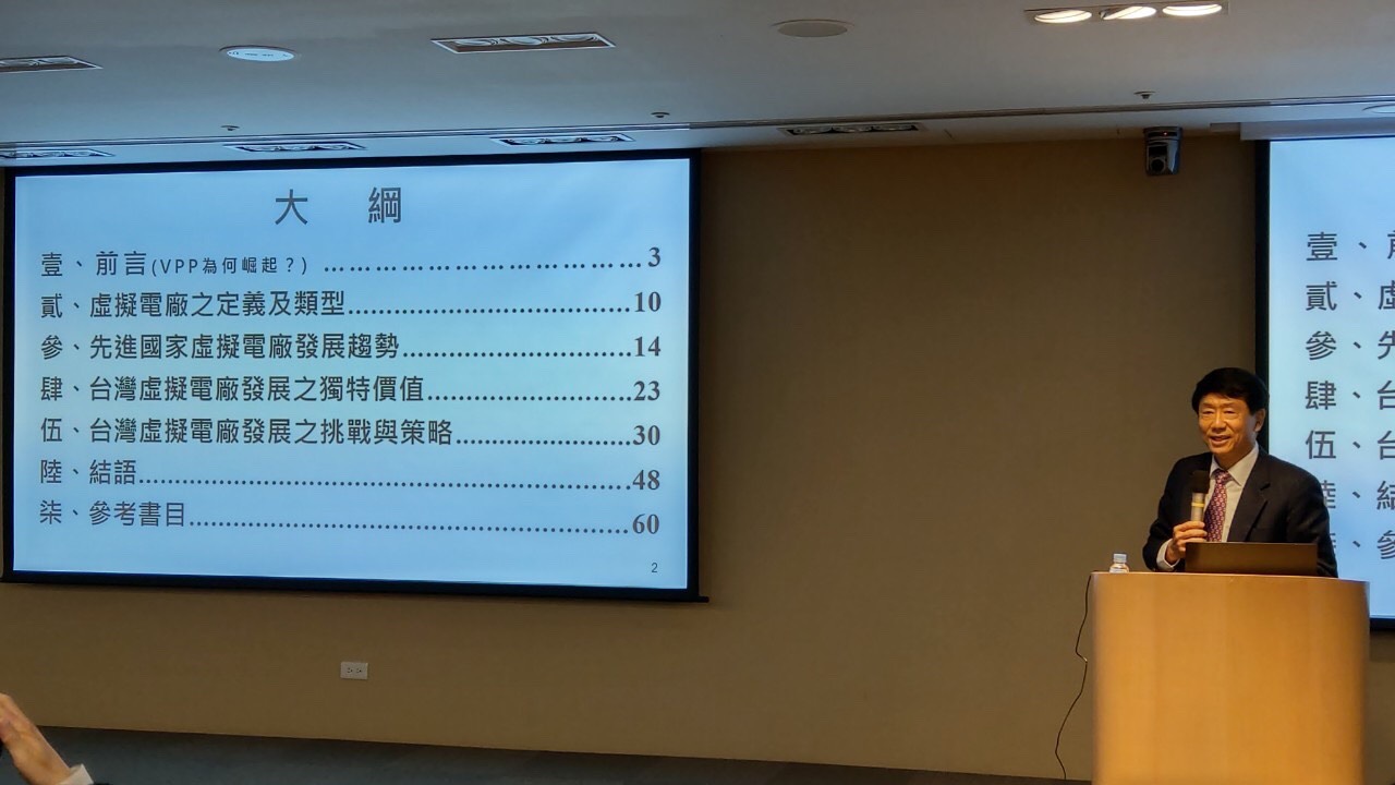 10月19日周一下午行政院能源及減碳辦公室邀請在張榮發基金會10樓國際會議廳,發表專題演講:「台灣虛擬電廠發展之價值與策略」。